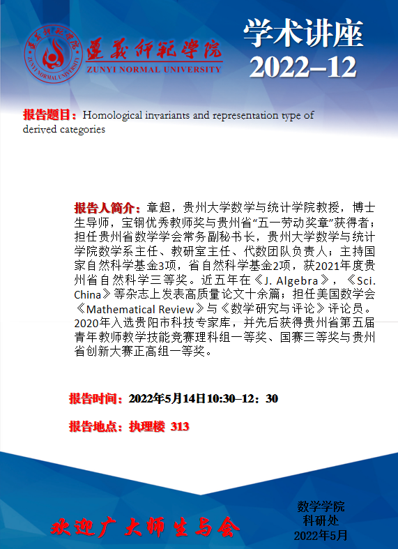 学术讲座2022-12:Homological Invariants and Representation Type of Derived Categories