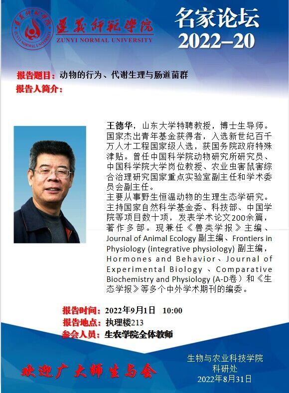 学术讲座2022-20:动物的行为、代谢生理与肠道菌群