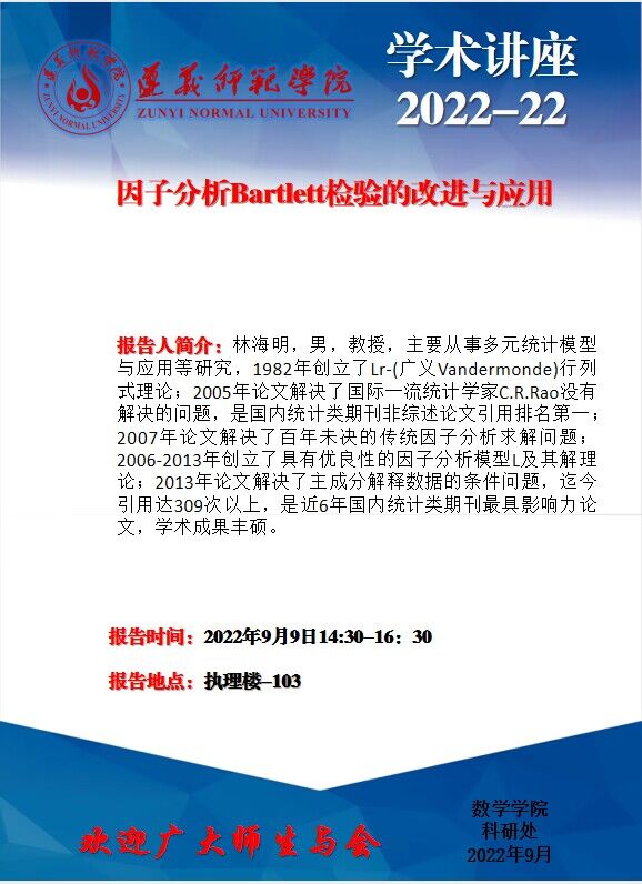 学术讲座2022-22:因子分析Bartlett检验的改进与应用