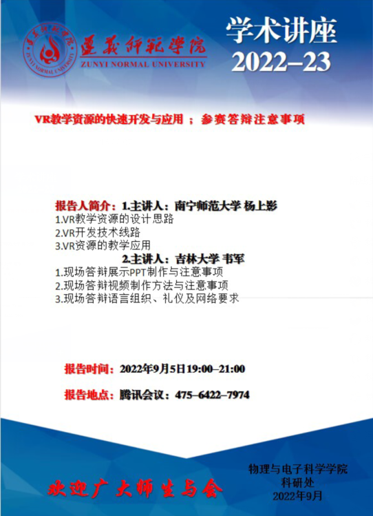 学术讲座2022-23:VR教学资源的快速开发与应用;参赛答辩注意事项