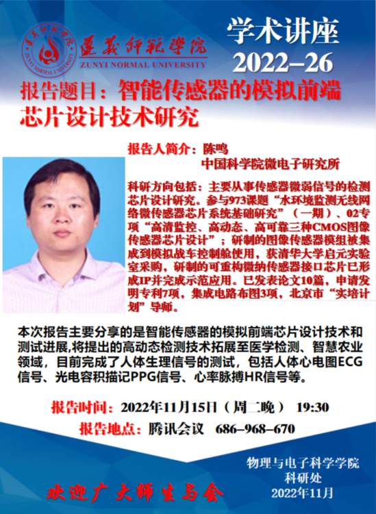 学术讲座2022-26:智能传感器的模拟前端芯片设计技术研究