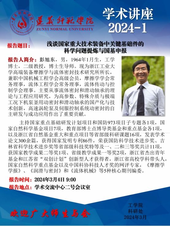 学术讲座2024-01:浅谈国家重大技术装备中关键基础件的科学问题提炼与国基申报