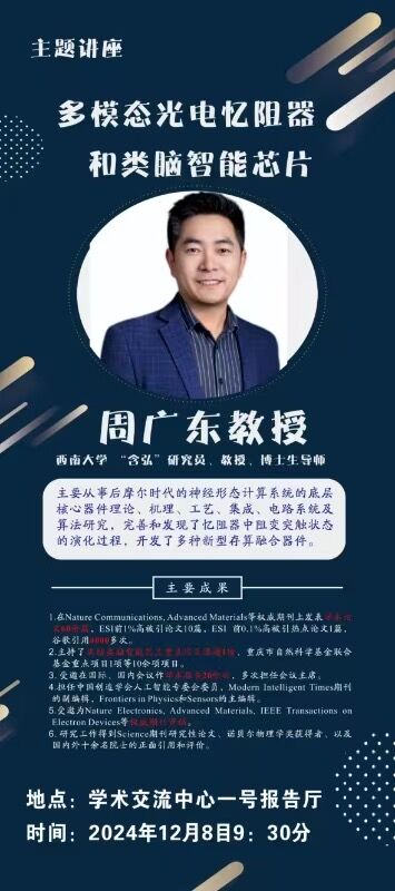讲座:多模态光电忆阻器和类脑智能芯片