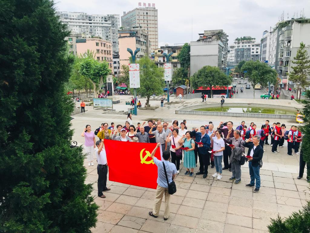 参观学习后,退休第二党支部为上半年入党的35位党员同志过政治生日,并面向党旗重温了入党誓词。(魏志琴)