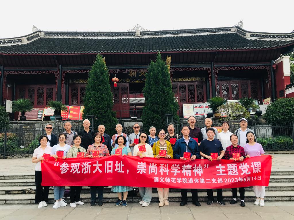 6月14日,退休第二党支部与离退休干部工作处全体党员同志前往贵州省爱国主义教育基地、全国重点文物保护单位、遵义市湄潭县浙江大学西迁旧址参观学习并开展“参观浙大旧址,崇尚科学精神”主题党日活动。