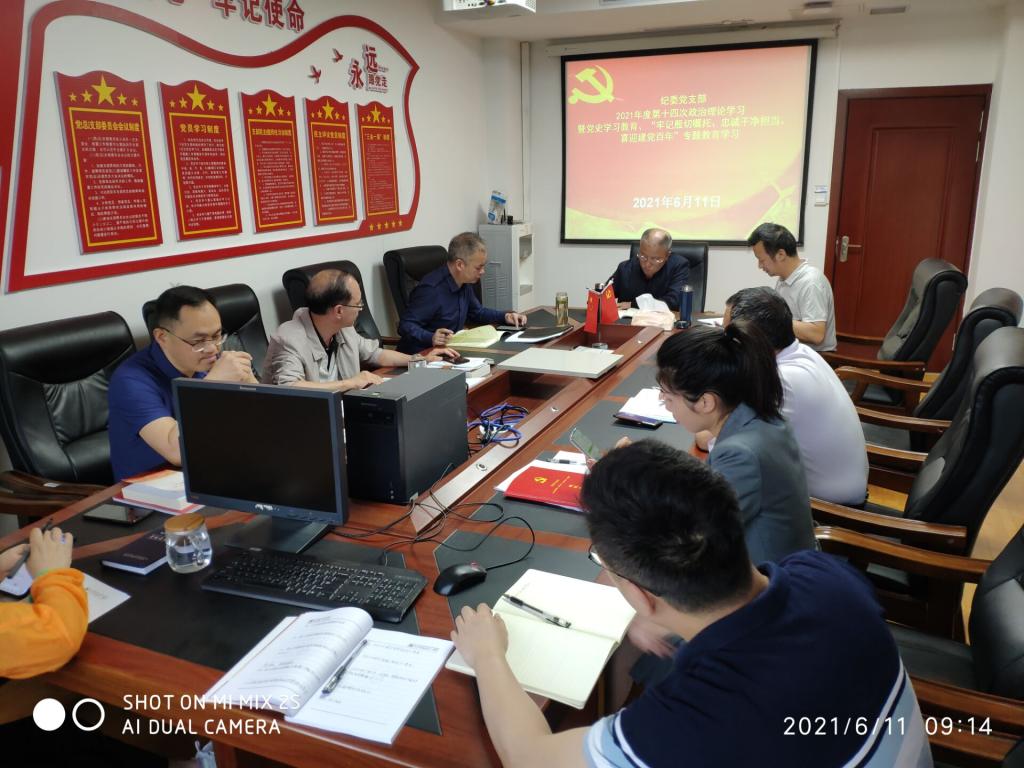 2021年6月11日上午纪委党支部开展第十四次政治理论学习暨“牢记殷切嘱托、忠诚干净担当、喜迎建党百年”专题教育,同步开展第十次业务学习、师德师风专题学习及安全稳定工作会议。纪委委员、监察专员刘剑同志出席会议参加学习,全体支部党员参加会议。