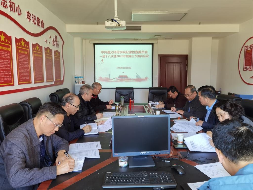 2020年11月10月下午,学院召开中共微信买球官方网站纪律检查委员会一届十八次暨2020年度第三次委员会议。会议由纪委书记、省纪委驻学院监察专员刘剑同志主持,全体纪委委员出席,学院纪检监察机构相关负责同志列席。