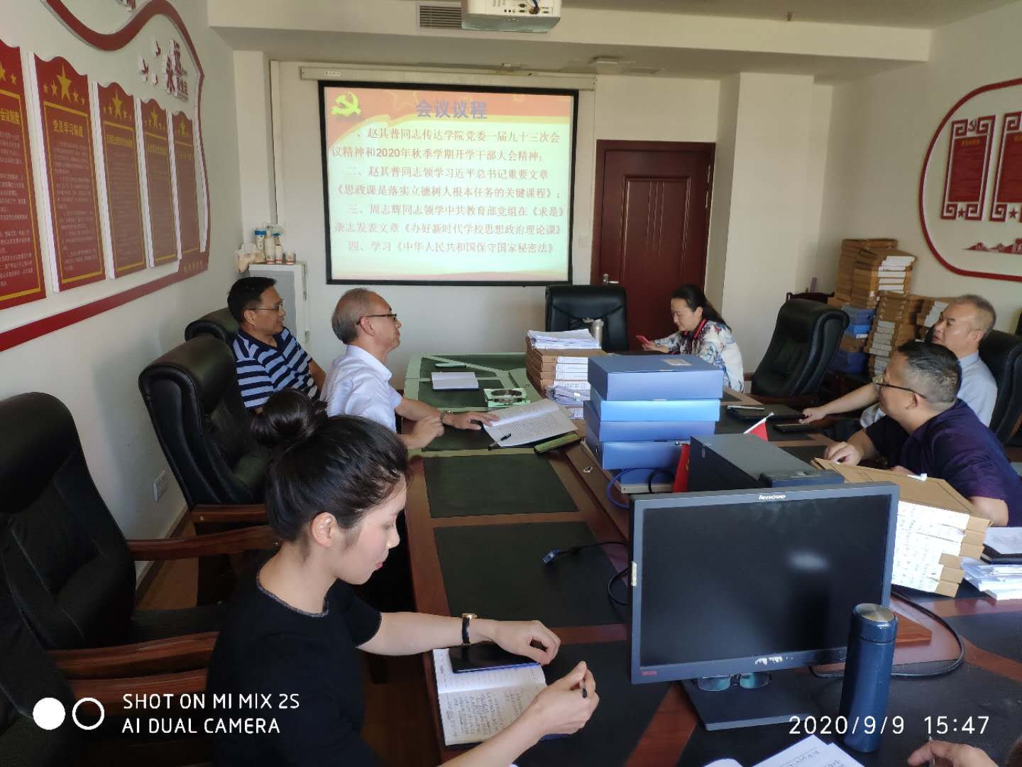 2020年9月9日学院纪委开展政治理论和业务学习,纪委书记、监察专员刘剑同志与纪委监察专员办公室相关人员参加学习