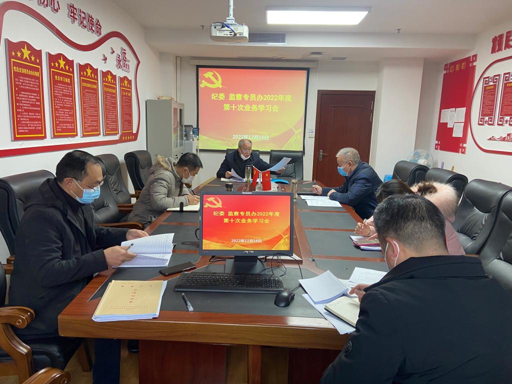 12月16日,纪委、监察专员办在行政楼413会议室开展2022年度第十次业务学习,纪委副书记李华禄主持会议,纪委书记刘剑及全体纪检监察干部参加。