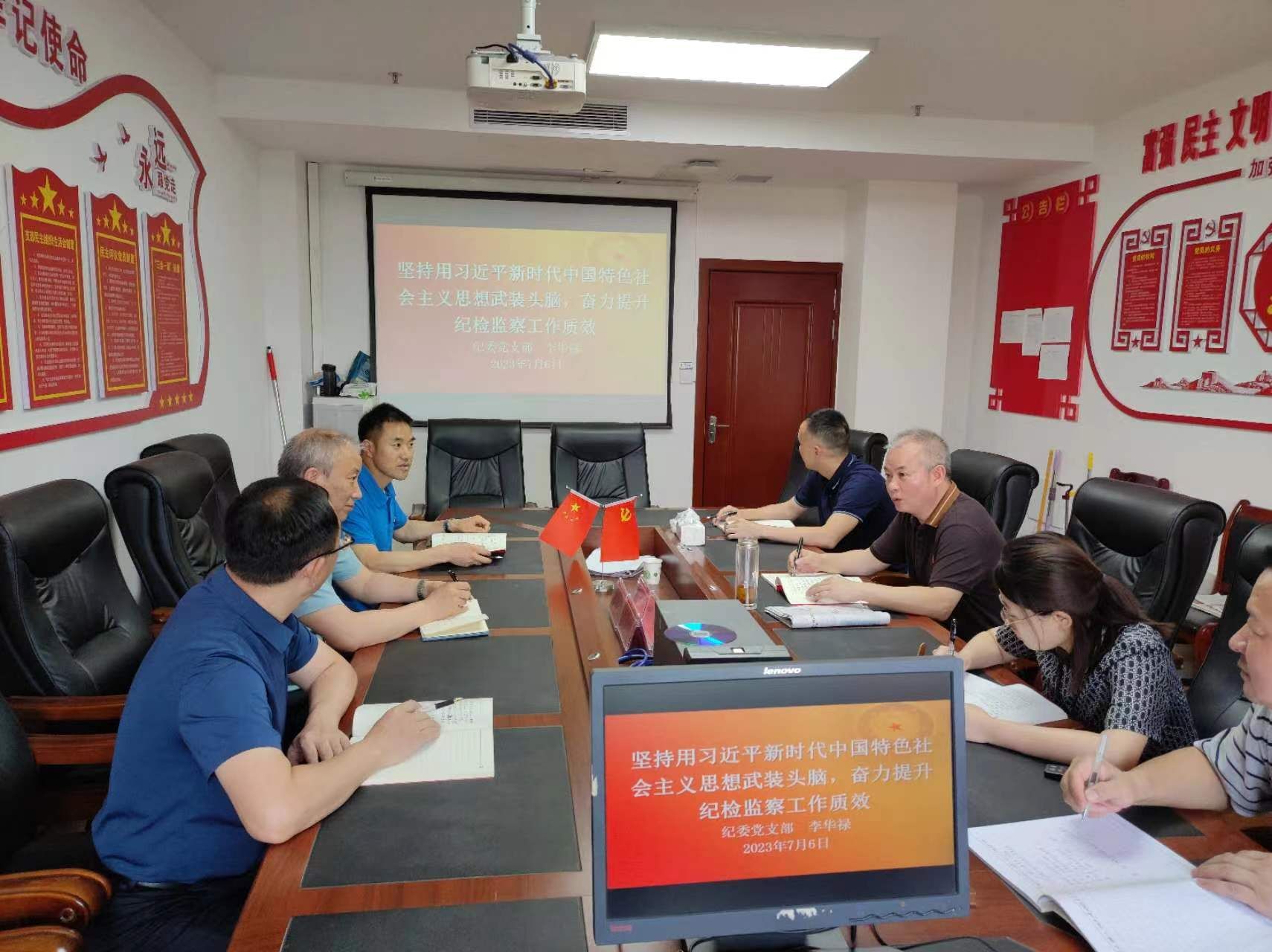 2023年7月6日,纪委党支部书记李华禄同志为支部全体党员上主题党课,题目为:坚持用习近平新时代中国特色社会主义思想武装头脑,奋力提升纪检监察工作质效。
