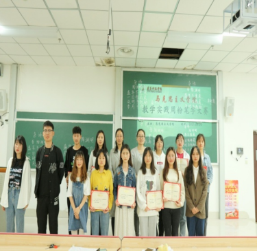 共有各班选出的9名同学参加比赛,比赛分为四人一组进行,通过抽签的方式决定出场顺序,书写内容为陶渊明的《杂诗》,限时4分钟。同学们站在讲台上认真且用心的书写了每一个汉字。最后,经过评委老师的打分,付能同学以90.5的好成绩荣获比赛第一名,涂廷霞、余颖两名同学荣获第二名,沈娟、高艳丽、黄贤瑶荣获第三名,其余同学则为优秀奖。比赛结束后,梁玲老师总结发言讲到:作为师范生,写好粉笔字对于学生来讲是一种美喻,也是必不可少的一部分;同时她也指出了同学们在书写时存在部分错别字以及倒笔画的问题,希望同学们在今后的学习生活中更加勤于练习,并积极带动各班两笔字的培训。