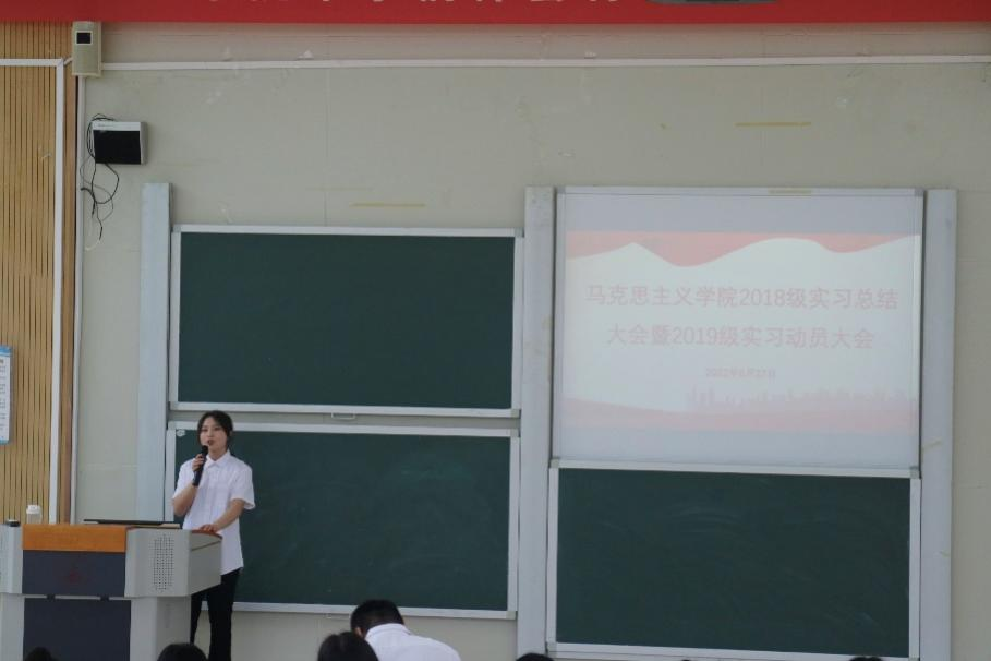 2022年6月27日下午,我院在执治楼112报告厅召开2018级实习分享会暨2019级实习动员大会,参与本次大会的老师有袁婧副书记、李军星副院长、教学科冯娇月老师、科研科梁玲老师和2019级班主任李艳老师。
