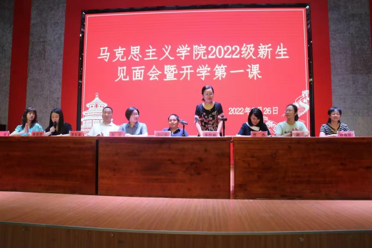 8月26日,马克思主义学院在长征讲堂举行2022级新生见面暨开学第一课。全体院领导、学院各科室负责人以及新生班主任参加了开学典礼。