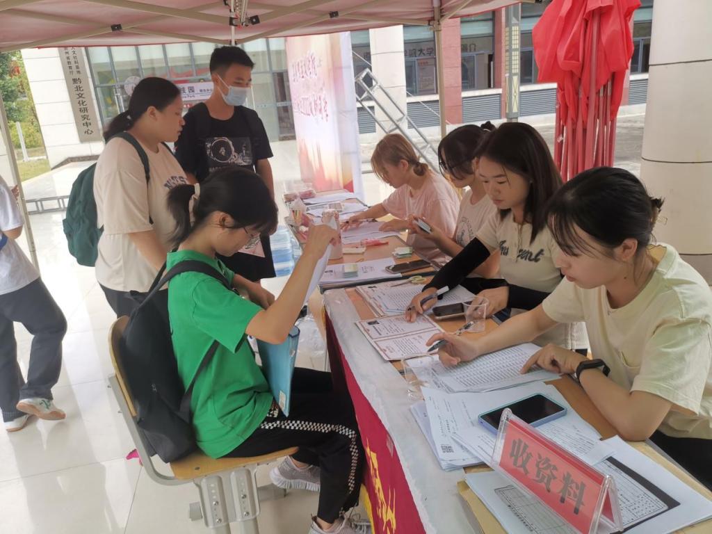 为简化新生报到流程,更好服务同学们,学院采取一站式的服务方式。学院团总支、学生会干部们以及志愿者们不顾酷热的天气,细心、细致、一丝不苟地为学弟学妹们提供热情周到的服务。从报到登记、收取相关的入学资料、发放校园卡、办理寝室入住等,积极为新生解惑答疑和引路。参加上午迎新工作的领导和老师有李应建书记,袁婧副书记,学生科、办公室以及新生班主任等。