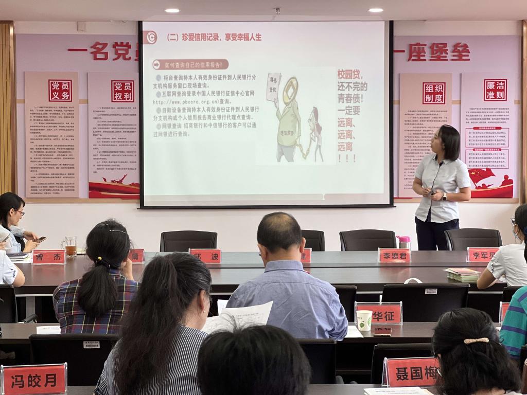 银行的同志介绍2021年诈骗案多为电信网络诈骗案,其诈骗手法形式多样,包括但不限于网络刷单、网络贷款、“杀猪盘”、冒充客服赔偿、冒充公检法。接着宣传了预防反洗钱的相关知识,最后对学院全体教师开展慰问。