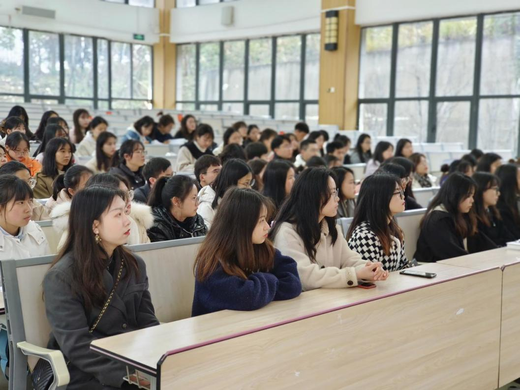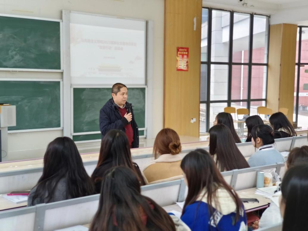 胡文静介绍了2023年的就业形势,引导同学们树立正确的择业观,抓住求职机会,积极尝试并积累经验,不断提高自身综合能力。