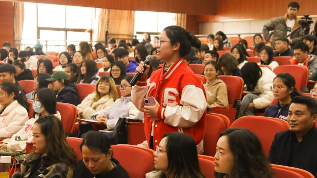 报告会上,在场师生踊跃提出对思想政治教育学科相关问题。针对现场提出的如何编写思想政治教育方面书籍、如何在马克思主义中国化时代化背景下将马克思与恩格斯的德育思想与思想政治教育学科相融合、如何处理思想政治教育与诗歌的关系等问题,万美容指出,要充分理解思想政治教育学科“四大支柱”,充分学习思想政治教育学科史;要正确认识思想政治教育的理论依据形成和发展的过程;要梳理好文化与文化育人的关系,平衡好诗歌与思政教育资源的融合。