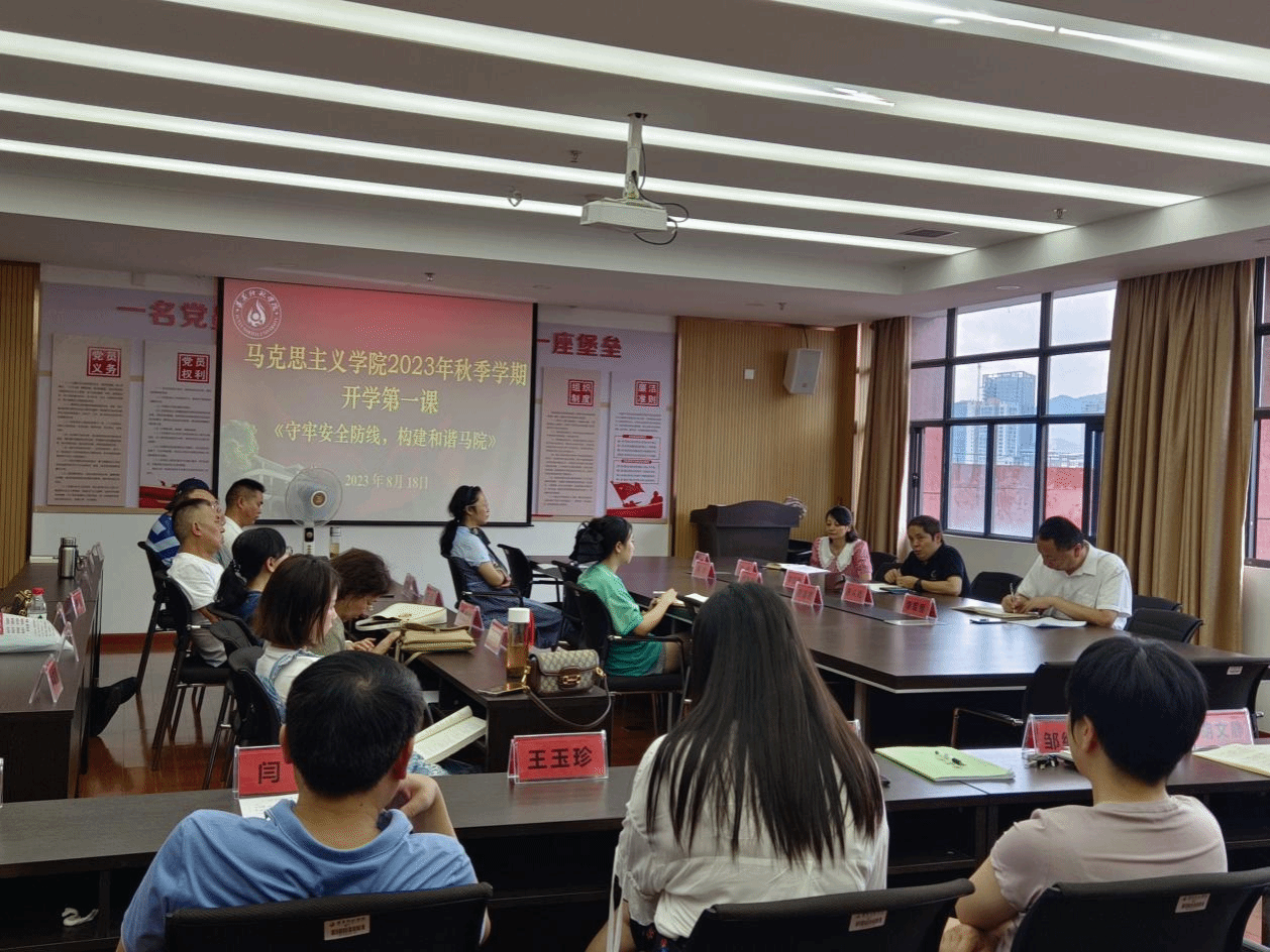 新学期开启新征程,新目标引领新方向。2023年8月18日上午,马克思主义学院召开2023年秋季学期开学工作会议暨开学第一课,学院全体教职员工参加会议。