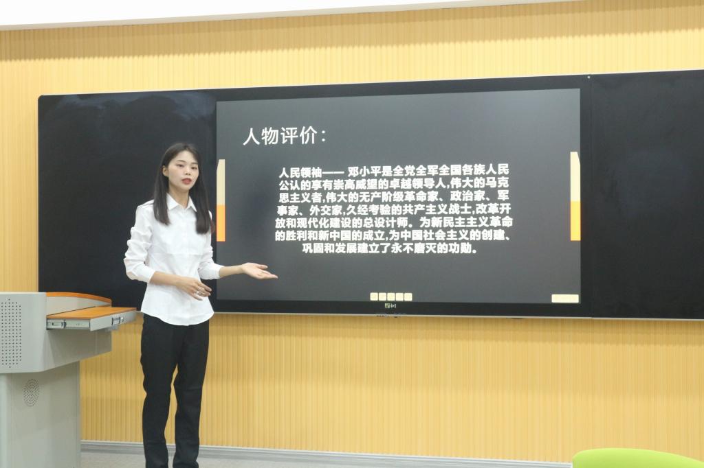 本次宣讲活动共有两个主题,第一个主题的主要内容是关于邓小平的生前事迹,由团员吴柳同学主讲,她分三个部分进行了讲解,介绍了邓小平的生平,讲述了他为我国革命建设、改革开放作出的卓越贡献;他为中华民族的独立、振兴、繁荣和中国人民的解放、自由、幸福不懈奋斗的伟大贡献,将永远留在祖国辽阔的大地之上。吴柳讲解结束后,高书记进行了简单的点评,对不足之处提出了建议和要求。第二个主题主要围绕宋庆龄的革命历史展开,由姚桃和李家娟两位同学进行宣讲,姚桃同学主讲宋庆龄的生平事迹,李家娟同学则讲述了关于宋庆龄的光荣事迹。活动最后,团长汪豪对本次活动进行了总结发言。