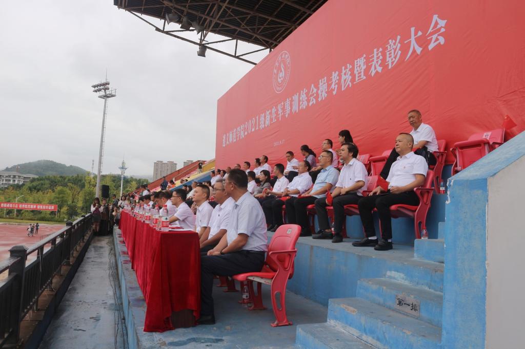 2021年9月17日9:00,微信买球官方网站2021级新生军训会操考核大会在西区田径场隆重举行。参加此次会操考核大会的领导有:遵义市汇川区武装部教官队长兼总教官田备,微信买球官方网站党委书记张波,微信买球官方网站党委副书记、校长刘肇军,微信买球官方网站党委委员、副校长 、2021 级新生军训团团长曾伯平,微信买球官方网站党委委员、副校长胡贵勇,参加此次考核大会的还有相关职能部门负责人、各二级学院班子成员、2021级各班班主任老师,以及2021级全体新生和2019、2020级的学生代表。此次会操考核大会共有六项议程,由微信买球官方网站党委委员、副校长刘衍民主持。此次考核我院获得了先进集体三等奖。