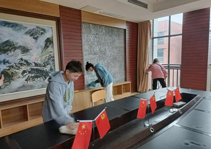 3月24日下午,我院21级思政3班同学们在班干部的带领下,给学院安排的网络面试间清洁打扫,给2022届的学长学姐们毕业求职及考研网络面试提供一个良好的环境。