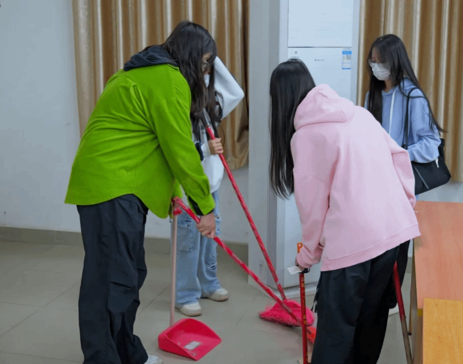 活动当日,同学们早早携带扫帚、抹布、水桶、清洁剂等工具抵达指定区域,迅速投入清扫工作。在教室里,大家分工明确:有的同学仔细擦拭黑板、讲台,将粉笔灰清理得干干净净;有的专注清扫地面纸屑、灰尘,并对课桌抽屉进行深度清洁;还有的同学负责将课桌椅摆放整齐,打造出整齐划一的学习空间。在走廊与楼梯间,同学们认真清理墙角积灰、楼梯缝隙杂物,对扶手、窗台反复擦拭,让公共区域焕然一新。