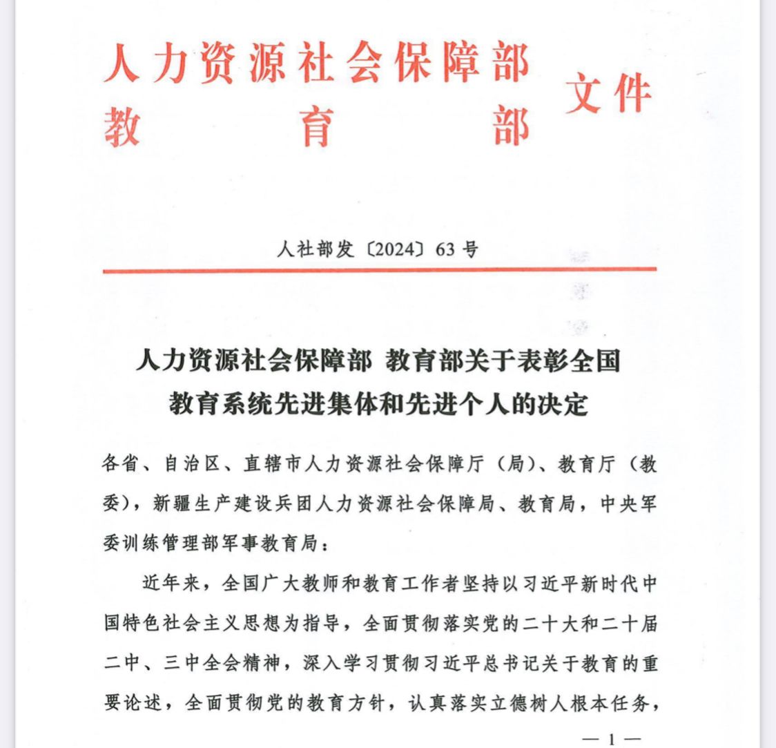 喜讯传来!我们衷心祝贺我院杰出的教师周璐教授荣获2024年全国教育系统模范教师的光荣称号。近日,人力资源社会保障部和教育部联合发布了一则振奋人心的表彰公告,对2024年全国教育系统中表现突出的先进集体和个人进行了隆重的表彰。在这一光荣榜上,我院的周璐教授赫然在列,荣获了这一令人瞩目的全国模范教师称号。