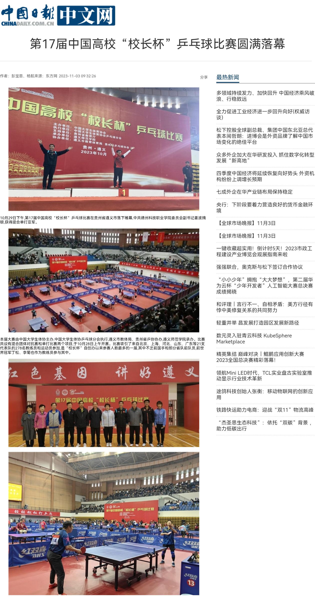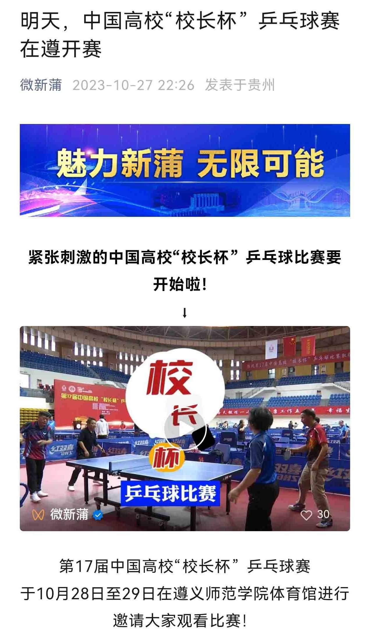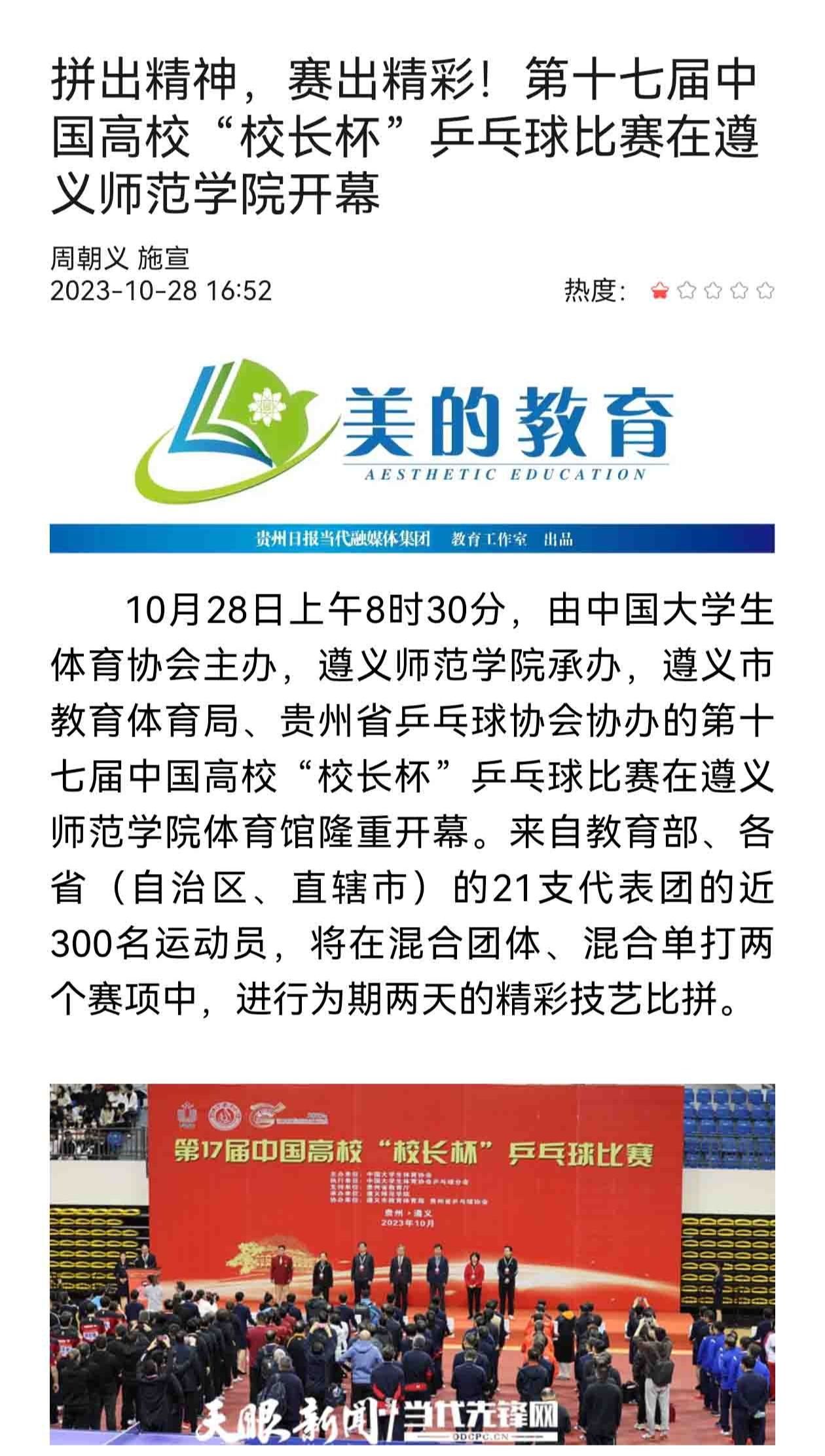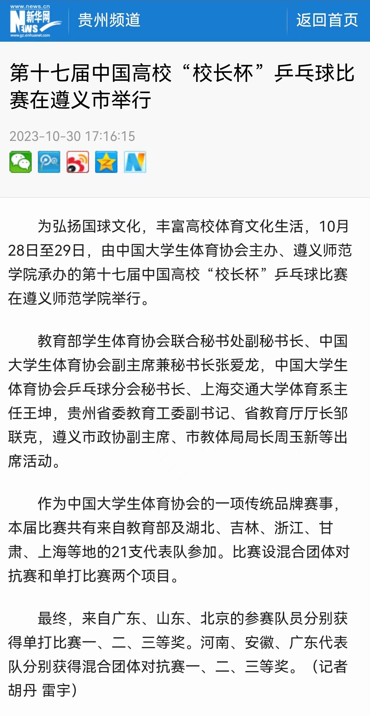 第十七届中国高校“校长杯”乒乓球比赛于10月28日至29日在微信买球官方网站举行,引各级媒体关注。