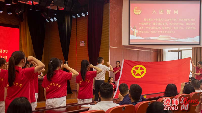 “我志愿加入中国共产党……为共产主义事业而奋斗。”团委书记付强带领团员代表重温入团誓词,他们铿锵有力的宣誓声响彻会场。