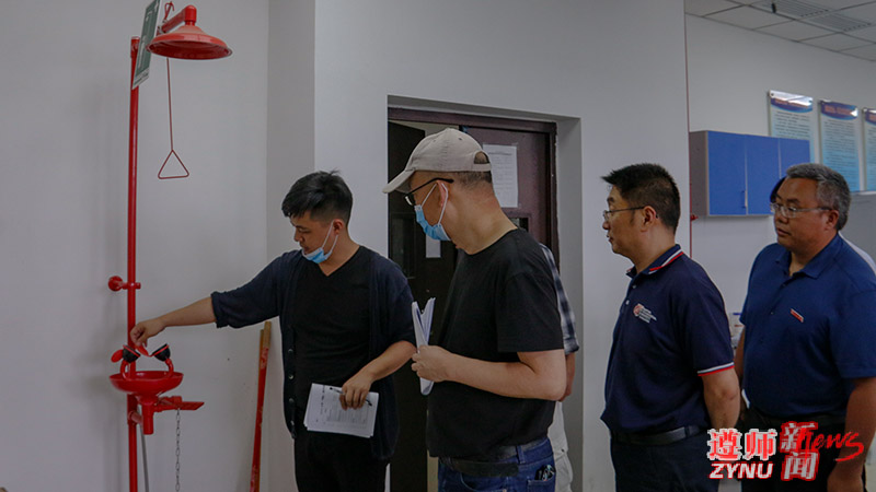 调研座谈会后,检查组一行对买球化学化工学院、工学院等教学实验室进行检查。