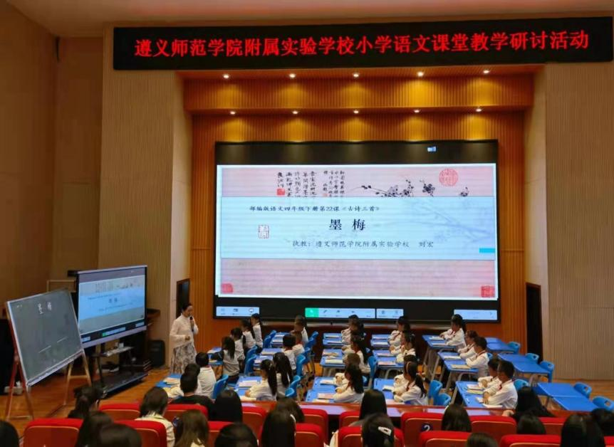 6月3日,附属实验学校小学语文教研组开展“名师展风采,引领促成长”名师示范课教研活动,由贵州省小学语文名师刘宏执教示范课《墨梅》。微信买球官方网站副校长胡贵勇,附属实验学校副校长许锐、小学部全体语文教师参与活动。
