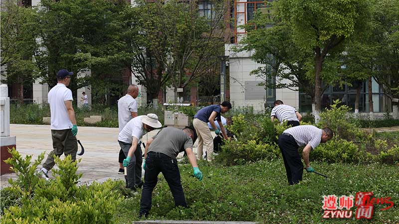 为着力建设实力智慧、美丽平安、特色文化、和谐幸福的校园环境,6月8日上午,学校党委书记张波带领教职工到百年广场前开展除草活动。