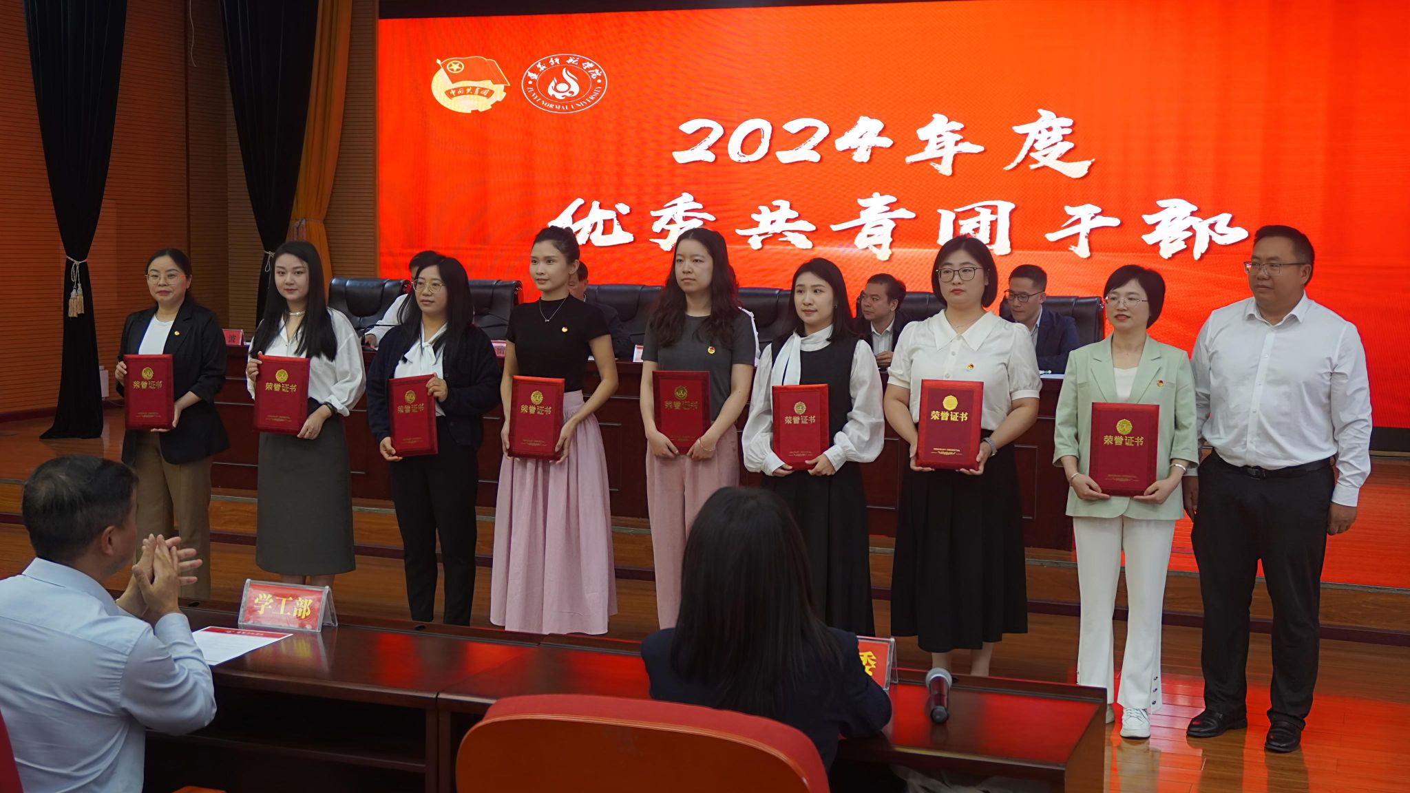 陈治松、肖仲久、吴波、王春华分别为五四红旗团总支、五四红旗团支部、优秀共青团干部、优秀共青团员颁奖。经校院两级评选、学校审核,共评选出2024年度6个“五四红旗团总支”、31个“五四红旗团支部”、12名“优秀共青团干部”、133名“优秀共青团员”。