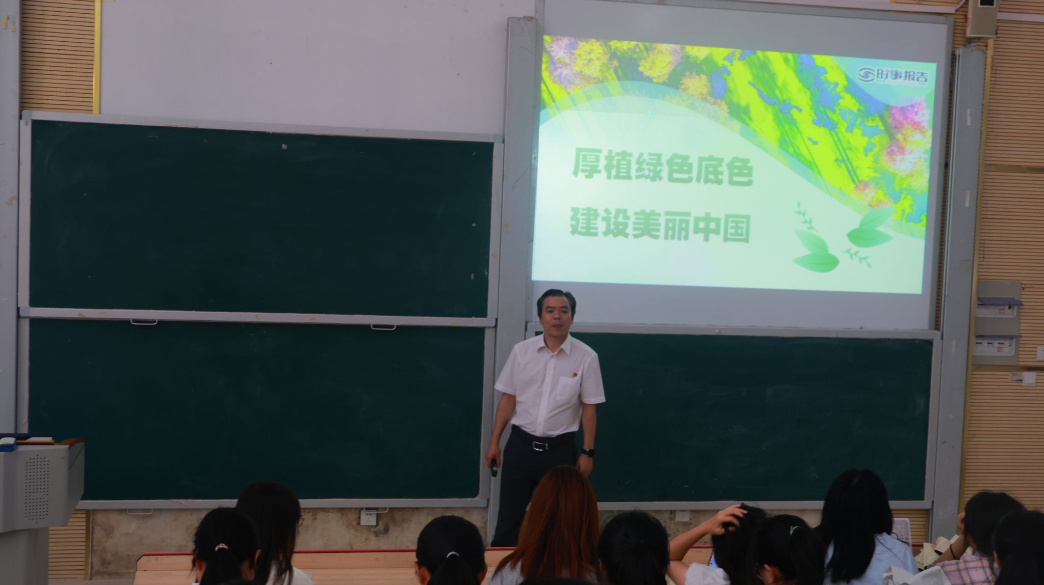 本网讯(文/杨燕 图/杨民秦生) 6月12日,学校党委委员、副校长肖仲久在执理楼负103教室上了一堂题为《厚植绿色底色,建设美丽中国》的思政课。