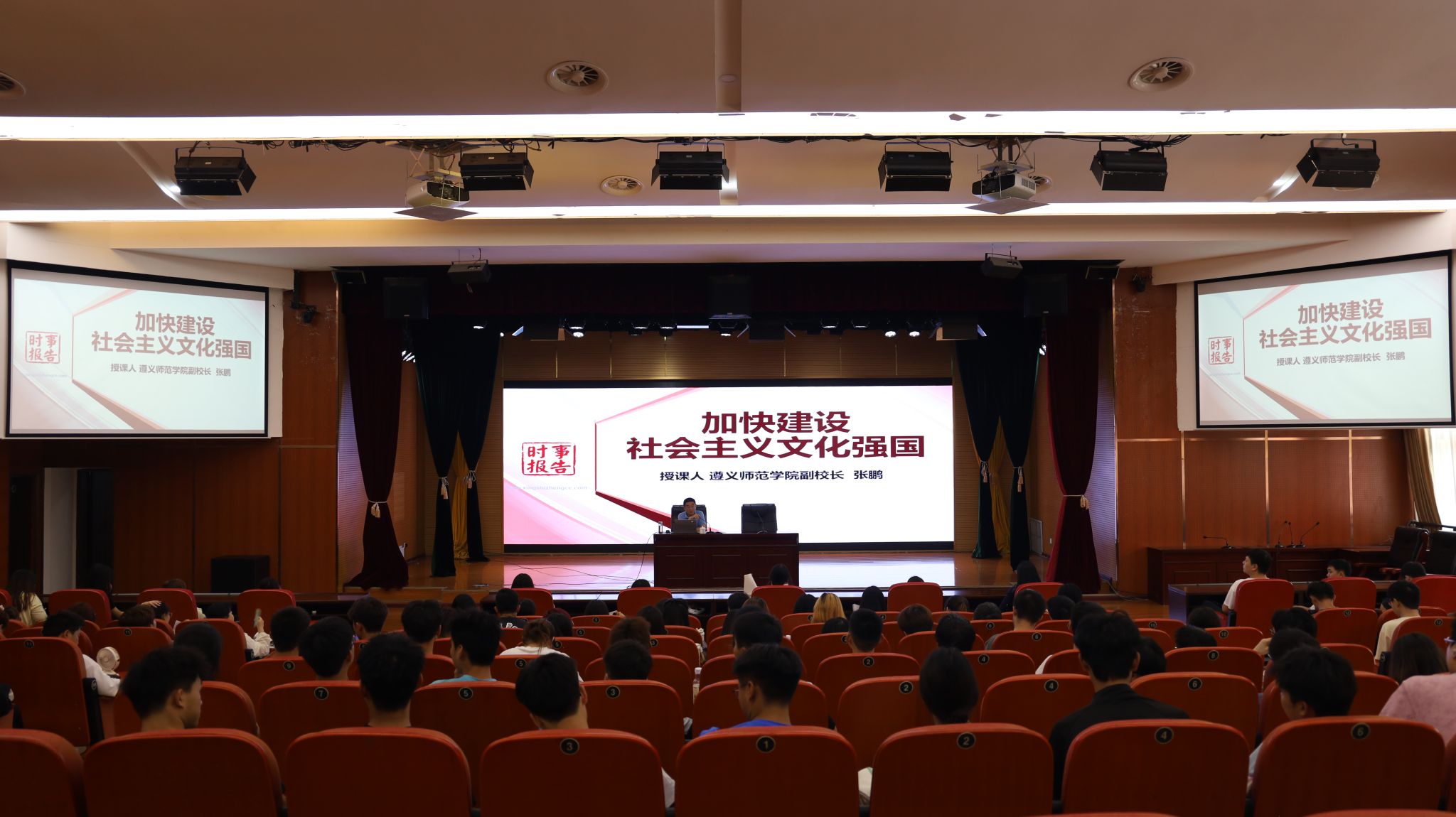 本网讯(文/施宣 图/季琼) 6月5日下午,学校副校长张鹏在学术交流中心二楼报告厅讲授题为《加快建设社会主义文化强国》的思政课。