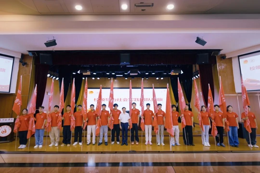 仪式上,学校党委书记陈治松为即将踏上征程的2025年大学生志愿者暑期“三下乡”社会实践团队授旗。