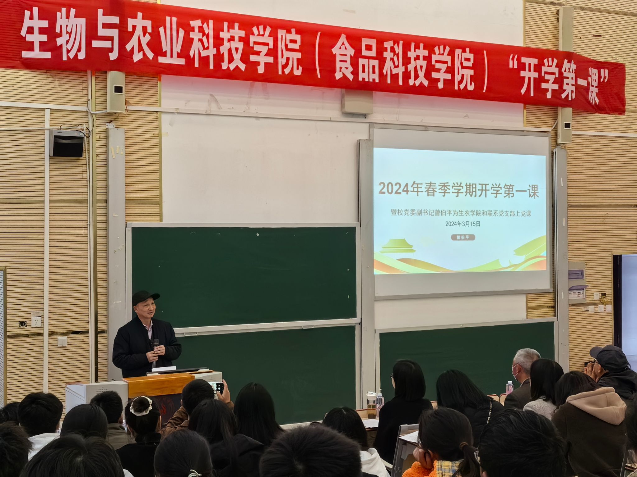 3月15日,微信买球官方网站党委副书记曾伯平来到生物与农业科技学院(食品科技学院)为师生们带来了一场精彩的“开学第一课”。