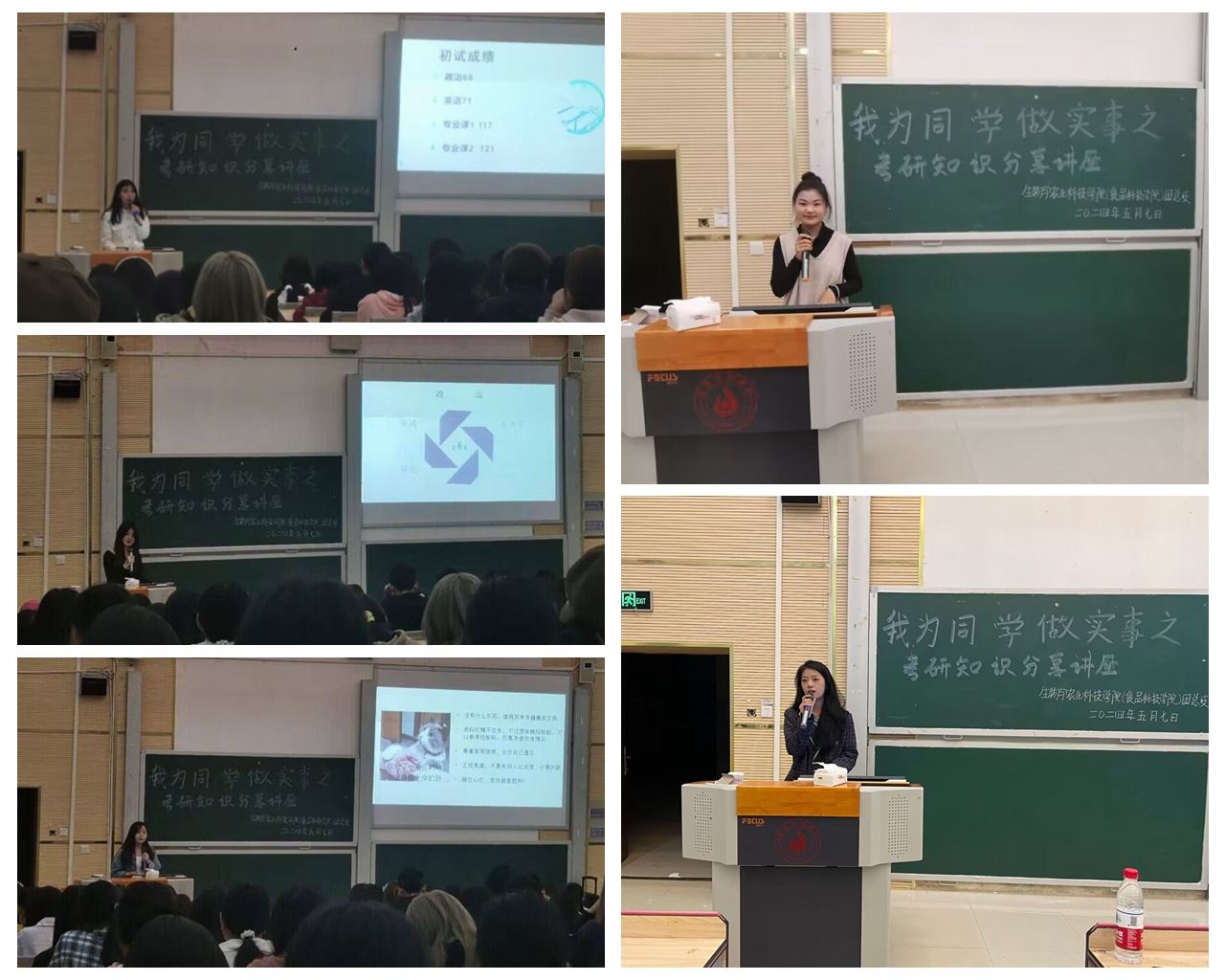 为了同学们更好地了解和掌握未来的考研趋势,更好地应对考研,生物与农业科技学院(食品科技学院)于2024年5月7日在执理楼-103教室开展“成功上岸,研途有我”考研知识分享讲座。本次讲座由学生会办公室成员王乃琴主持,2021级、2022级、2023级部分同学参会。
