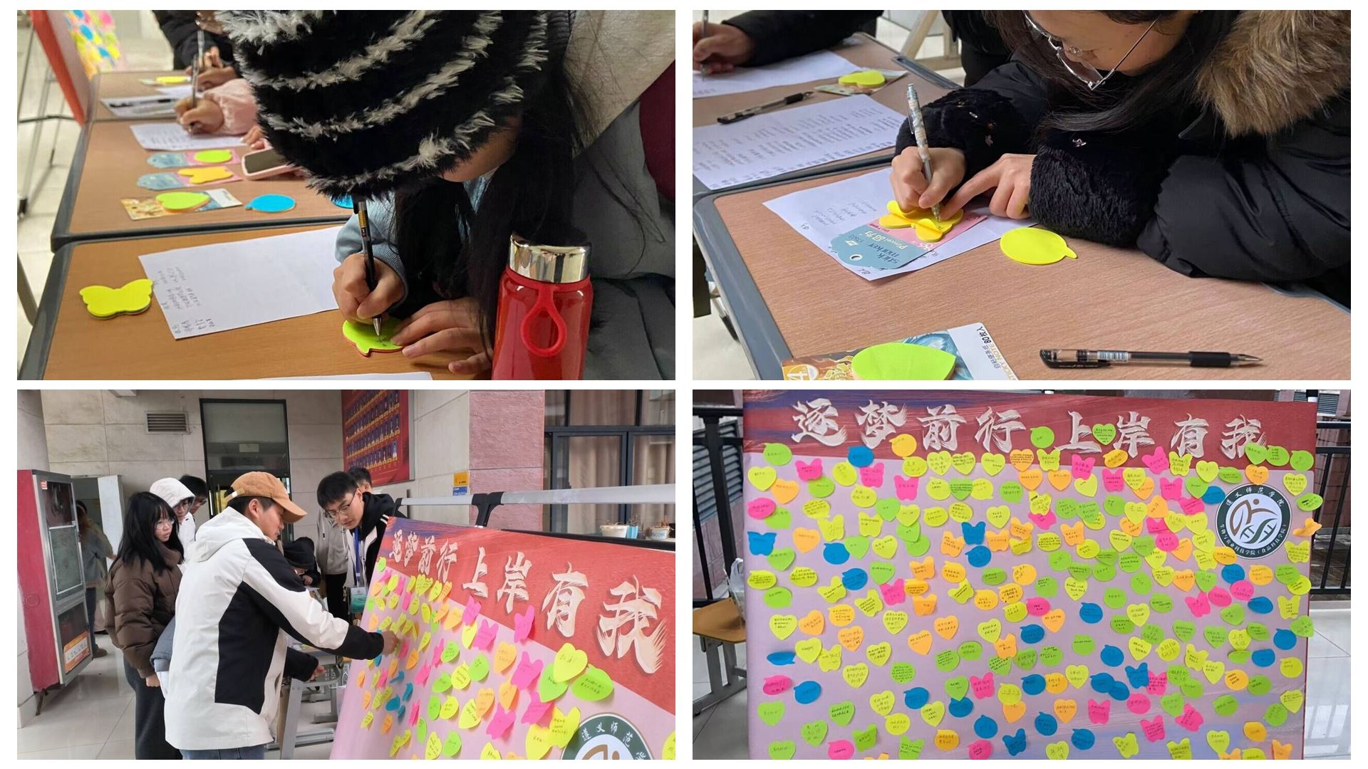 活动伊始,工作人员向同学们简单介绍了活动流程并给同学们分发了便利贴。活动现场,同学们纷纷写下了自己的心愿和祝福,并相互鼓励,共同为梦想加油。许多同学表示,这次活动让他们更加坚定了自己的信念,激发了他们的斗志,让他们更加有信心去追求自己的梦想。一块贴满了便利贴的展板汇成一面祝福墙,让备考同学们在紧张的学习生活氛围中找到了一份温暖和归属感。