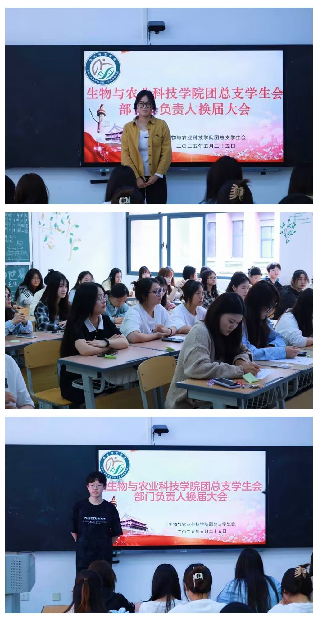 2025年5月25日下午14:30,我院团总支学生会在执理楼205教室成功举行2025年学生会部门负责人换届选举大会。大会由学生会办公室主任王乃琴主持,学生会全体成员参加。