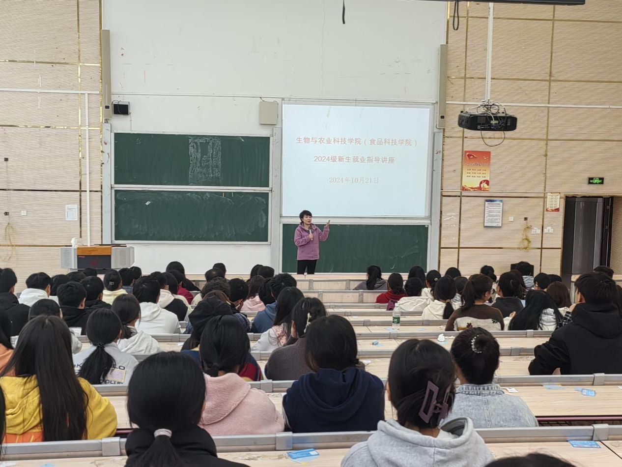 2024年10月21日下午,生物与农业科技学院(食品科技学院)专职辅导员程欢在执文楼119教室为2024级全体新生开展就业指导讲座。