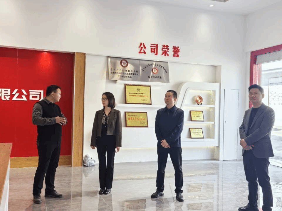 为全面落实党中央、国务院、教育部及买球“稳就业”“保就业”决策部署,千方百计促进毕业生就业,加强与用人单位的沟通交流,2024年3月28日上午,生物与农业科技学院(食品科技学院)党总支副书记方园、副院长尹明智、辅导员程欢前往贵州大地源丰食品科技有限公司开展访企拓岗活动,公司总经理骆弟益、副总经理赵福涛、副总经理李汶岭陪同参观公司展示厅、实验区、生产区,并做相应解说。