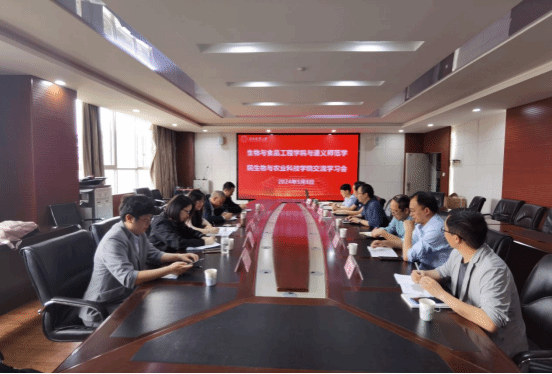 5月8日下午,邓崇阳一行来到西南林业大学生物与食品工程学院开展交流学习。会议由生物与食品工程学院院长罗旭主持,副院长李翠新、副院长敖新宇、动物科学教研室主任郭爱伟、食品科学与工程教研室主任范方宇、刘云教师参加了会议。罗旭对邓崇阳一行表示热烈欢迎,并介绍了学院基本情况。隋常玲感谢生物与食品工程学院的热情接待,同时介绍学院基本情况。随后,两学院就教学改革、实验室建设、科研合作、考研与就业等方面进行充分交流讨论。