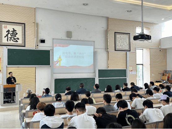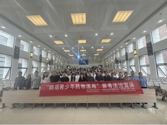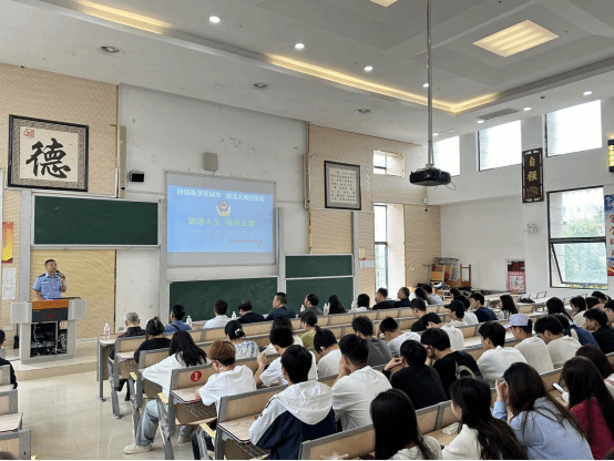 活动首先奏唱中华人民共和国国歌,随后由长期从事禁毒宣传教育工作的高飞警官主讲《健康人生、绿色无毒》,深入剖析青少年药物滥用的危害及预防措施;刘芳军律师以《预防电信诈骗法治讲座》为主题,用鲜明生动的案例和令人瞠目的数字警醒在座的师生们要时刻提防涉嫌诈骗的信息,提醒大家在信息化社会中提高警惕,保护自身合法权益;符珊警官组织全体人员向禁毒宣誓,以此表达我们共同抵制毒品、维护社会和谐的决心。