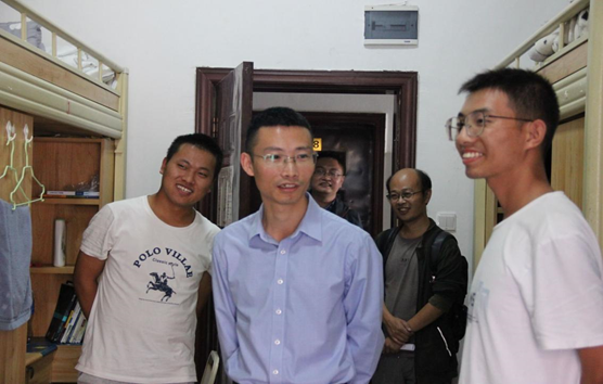 10月9日,数学学院党总支副书记(主持党总支工作)肖秋芳、副院长(主持行政工作)田俊康、党总支副书记王丹带领全体教师党员深入学生寝室,看望学生。