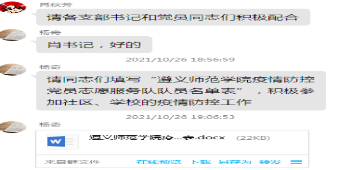 关键时刻看担当,重要关口见品质,危难时刻挺在前,守护健康我当先。自10月19日遵义出现新型冠状病毒肺炎疫情本土增长后,全市各地迅速行动起来,积极做好防控工作。数学学院深入贯彻习近平总书记关于疫情防控重要指示精神,认真将学校疫情防控工作部署落细落小落实,结合学院实际,细化科学防控各项措施,有序推进学院疫情防控工作。