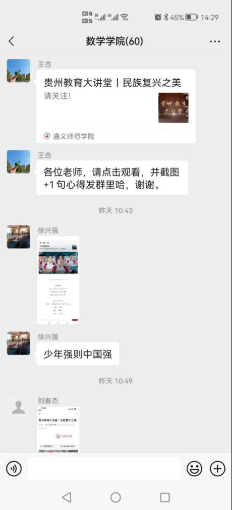 根据《关于组织收看第17期“贵州教育大讲堂”的通知》要求,数学学院领导班子高度重视,并于8月29日组织全体师生在线观看了“贵州教育大讲堂”——民族复兴之美。