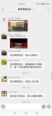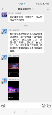 根据《关于组织收看第28期“贵州大讲堂”的通知》要求,数学学院领导班子高度重视,于7月27日组织全体师生在线观看了“贵州教育大讲堂”理想信念之美,并要求各班主任召开主题班会开展交流学习。