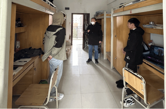 走访过程中,学院领导、老师与同学们进行了亲切的交流。一是询问同学们的学习、生活以及家庭情况,认真倾听同学们的建议,并为同学们解答有关实习、毕业答辩以及考研和就业等方面的疑惑;二是对同学们寝室安全和卫生情况进行检查,督促同学们注意用电安全,保持宿舍整洁和卫生。