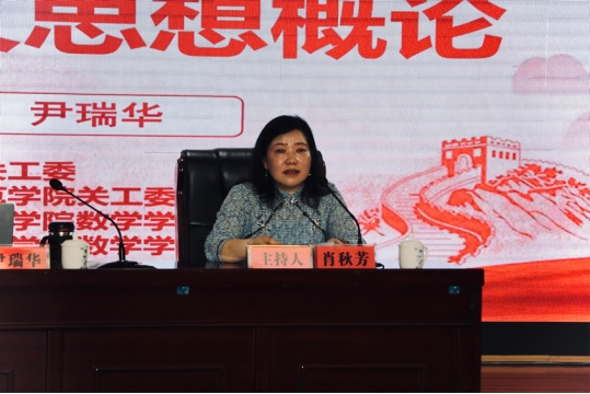 2024年5月24日下午,数学学院党总支、数学学院关工委诚邀贵州省科学社会主义暨政治学学会监事会主席、中共遵义市委党校原校委委员、党史党建教研部主任尹瑞华教授在微信买球官方网站学术交流中心二楼报告厅作主题为“习近平新时代中国特色社会主义思想概论”的讲座。参加讲座的领导有微信买球官方网站党委委员、副书记江山,遵义市关工委副主任黎代琼,微信买球官方网站关工委副主任王劲,微信买球官方网站数学学院关工委常务副主任邱学宗、微信买球官方网站数学学院副院长(主持工作)田俊康、副院长何军以及数学学院全体教师和在校学生代表。此次讲座由数学学院党总支书记肖秋芳主持。